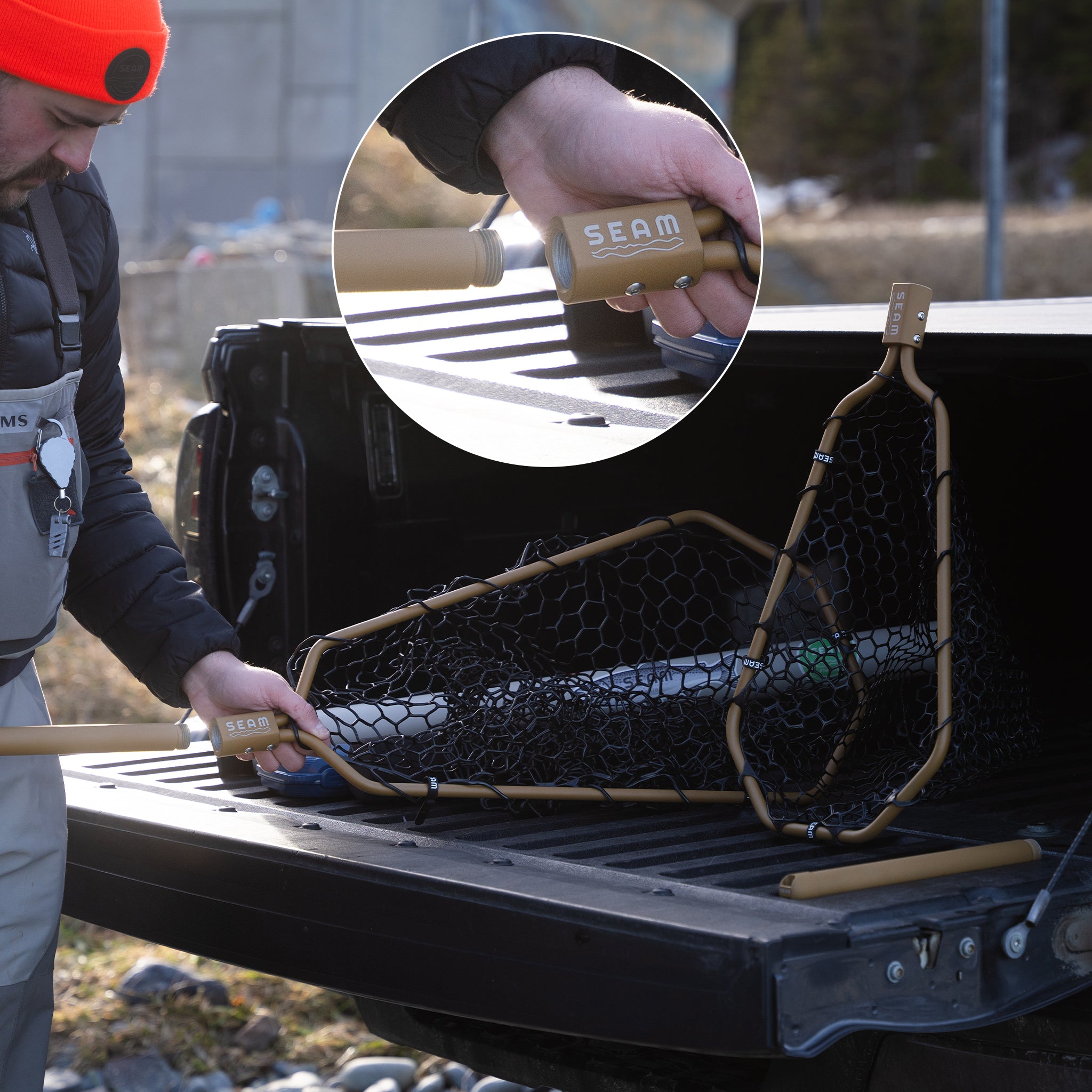 The bundle includes the Dory basket, both handle lengths and both butt caps. As our flagship landing net, it’s light enough for the walk and wade, yet versatile enough for the boat.